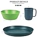 【Perfect Size】This plastic dinnerware set includes 12PCS (4 x plastic dinner plates- 9.6" in diameter, 4 x plastic bowls- 6.3"W x 2.3"H, 4 x plastic mugs- 3.1"W x 3.8"H). Each set comes in 4 beautiful colors. Give you a perfect set of matching designs and colors