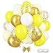60Pcs Theme Party Balloon Set: This balloon kit included 12inch yellow balloons(20Pcs), 12inch macaron yellow balloons(15Pcs), 12inch white balloons(15Pcs), 12inch gold balloons(5Pcs), 12inch gold confetti balloons(5Pcs). Also, it’s equipped with 2 pieces of ribbons.