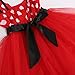 Minnie mouse dress is generally red and dotted with white dots, with bows on the front and back.