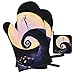 3 PIECE VALUE SET - Features 2 oven mitt (11 in x 7.2 in) and 1 pot holders (8 in x 8 in). Waterproof polyester fabric + anti-scalding material. Side lanyard design is convenient for hanging storage.
