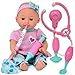 INTERACTIVE BABY DOLL WITH DOCTOR KIT – A complete set of medical toys with 12 inch all vinyl Bab Doll dressed in adorable outfit and headband. Doctor tools included for your little one to pretend and role play. Set includes: 12 Inch Doll, Talking Stethoscope, Thermometer, Needle, Medicine Bottle, Stick, and Hammer.