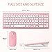 【Slim and Ergonomic Design】 The slim keyboard has a tilt angle for the great typing position.Sweat-resistant, skin-friendly finish wireless mouse in contoured shape would provide hours of work comfortably.