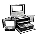 【Large Mirror & Grab-and-Go Handle】This mirrored jewelry box comes with a built-in large mirror on top lid, making it easier to dress yourself. The lid has a ribbon attached to keep it from falling back. With a grab-and-go handle, convenient to carry around; delicate lock catch for one-hand easy opening, easy to use and saving your time.