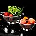 【DESIGN】Tiny and closely spaced holes mean your food drains fast, the mesh is sturdy and will not warp, stretch, or snag even under heavy foods(In particular, rice and spaghetti won't fall through the holes); Footed design facilitates fast, easy drainage, the sturdy solid ring base keeps the colander from tipping over; Our premium handles are riveted to the bowl so it will never come off!