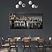 Overall size: 48"W x 24"H. One piece black and white cityscape canvas artwork.
