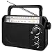 Radios portable AM FM; FM band can meet your needs for listening to music or talk shows if you live in a big city ; AM will be a good assistant for you to listen to a ball game if you live in a rural or mountainous area far from the city; but need to be careful to keep AM away from electronics