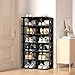 【5-Tier Shoe Rack】 HAIXIN small closet shoe organizer is made from strengthened pp material and upgrade sturdy smooth water-resistant panel connectors, good stability and prevent rusting, making the narrow shoe rack stackable easier to be set up and stabler. No tools are required for assembly. Easy to clean with its smooth PP surface. Directly flush and wipe it without disassembly.