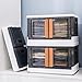 【Two Opening Ways】The storage containers is able to open in two ways. You can open lid on the top or open from the front door. Items can be picked up from the front door that built with lock buckles, so there is no need to carry boxes to pick up items no matter how many layers are stacked. Easy to open from the top lid and take things, it does not take much time. The buckles keep contents safely stored inside.