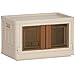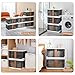 【Two Opening Ways】The folding storage bin is able to open in two ways. You can open lid on the top or open from the front door. The front door built in lock buckles, rotating the brown handles in and out to control the doors lock and unlock, ensure the doors don't just come open on their own. Th front door make it easy to access to everything inside without having to pull everything down or removing the things on the top lid. Keeps things from being exposed to dust.