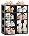 【Easy to Assemble】The simple modular structure of shoe organizer is easy to install. With its simple and intuitive design, you can assemble it in just a few minutes without any special tools or skills. There are only two shapes of shoe rack organizer accessories, classified to place, easy to distinguish. U-shape panels attache all the parts nicely together for more stability.