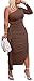 Feature: Sleeveless, adjustable one shoulder/off shoulder, ruched back, slim fitting, midi length, solid color, suitable for most body shape, make you looks more sexy and elegant