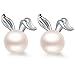【ANIMAL SERIES EARRINGS】Han han 925 Sterling silver pearl earrings for women. White gold plated pearl stud earrings with freshwater cultured pearl. Bunny stud earrings rabbit pearl earrings for women, girls earrings. Lovely bunny pearl stud earrings sterling silver.