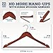 VERSATILE - With clear, varnished wood, a 360 degree chrome hook, grooved pant bar, and contoured shoulder line, these closet hangers have made even the most finicky clothing easy to hang up!