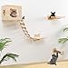 3.Natural Wood Cat Wall Playground:Made of sturdy solid wood,without adhensives and paint, eco-friendly and safety. The cat shelf for wall is strong ecough as a nice choice for activity climbers. The cat scratching post’s sisal rope is durable,kept their claws off of your furniture.Easy clean and never get matted with cat fur.