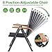 【8 RECLINING POSITIONS】:The ergonomic curve-designed outdoor lounge chairs feature 8 adjustable reclining positions for a comfortable outdoor lounging experience. It is perfect for sunbathing, relaxing, or enjoying a good book. With the concise design and classic black appearance with a wood-like armrest, the chair can complement any indoor & outdoor daily occasion.