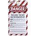 These vinyl tags have brass grommets, clear warnings, and a writeup section that are all OSHA-compliant (1910.147)