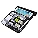 Small electronic devices, cords, and chargers inside this slim organizer from pb travel