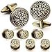 UNIQUE DESIGN: Cufflinks are hollow out design, it's lighter and won't put much weight on your French cuff. The studs are double- side printed, the back is width enough to allow them to stay in place.