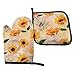 2 Piece Set Kitchen Cooking Partner: 1pc square potholder (size: 8 x 8 inch) + 1pc oven mitt (size: 7.5 x 11 inch)
