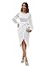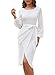 Design: Chiffon long sleeve dress, V-Back, round neck, self belted, hidden zipper, midi length, elegant and casual style, split dress is classic while sexy, looming your beauty legs. slim comfort bodycon fit and they will fit your body in a very flattering way. Colors: Black, White, Navy Blue, Burgundy