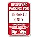 INSTALLATION. All signs come with burr-free corners and 3/8" punched and pre-cleared holes. Signs mount to U-channel posts, square or round galvanized posts, wooden posts and chain link fences..RESERVED PARKING. Convery your Unauthorized Vehicles Towed warning with this Reserved Parking For Tenants sign.