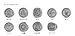 Three series of interchangeable dies are available : Symbols; initial letters each of the Vintage Retro and Script Old Style alphabets.
