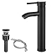 【Easy Installation】: The tall black bathroom faucet is deck mounted installation type.Single Hole Mount for Easy Installation. Follow the installation instructions of the vessel sink faucet black ,the bathroom sink mixer tap is easy to finish the DIY installation with all mounting hardware included.