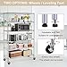『Equipped with casters & feet levelers』The shelf comes with 4 adjustable base and 4 nylon wheels, you can choose whether to install the wheels depends on what you like. The wheels are a bit heavy, so it has better load-bearing effect. And two of them can be locked. The wheels are an added bonus and make it super easy to move the shelves to clean and sweep underneath them.