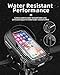 WATER RESISTANT CARBON PHONE MOUNT:The bike phone bag use the water resistant material + High seamed workmanship process you a dual waterproof bike bags ( ensure your Headphone plug is closed )