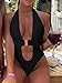 [FEATURES]: Sexy bathing suit for women, deep v-neck, backless, buckle front, cut out, solid color, slim fit