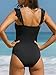 [FEATURES]: One piece bathing suit for women, flounce shoulder straps, rib knit, removable padded, high waisted bikini bottom, skinny fit