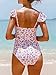 [FEATURES]: Ruffle shoulder straps, flower print, ruched design, adjustable strap, square neck, high waisted swimsuits, removed padding cups