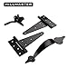 【Easy to Install】Gate Hardware Set include 2 pack 6in shed door hinges, 1 pack Gravity Self locking gate door latch, 1 pack vintage gate door handle and 26pcs mounting screws, can be used for right-handed or left-handed applications for full or half surface installations. Comes with installation instructions and all mounting screws, no angle measure required.