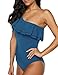 Off the shoulder one piece swimsuit features ruffle trims; double flounces; Asymmetrical one shoulder neckline; Ruffled swimsuits for women