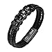✔️【Available Size】Please choose the number and position of beads you want to customize, and each with a maximum of 8 characters. The beads measure 0.15"x 0.5"/4 x 12mm, and the black leather bracelet comes in 3 lengths, 7.87''/20cm, 8.26''/21cm and 8.66"/22cm. This mens bracelet fits most wrist sizes, it’s easy to take on and off with strong sliding metal clasp.