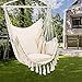 【STURDY and DURABLE】:This Swinging hammock chairs are tightly woven with sturdy cotton and polyester fabric, high quality construction ensures this hammock chair will never tear or break with regular use. Large size chair swing with two cushions offers plenty of space and make you feel so excellent.