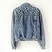 Womens vintage oversized cropped pearl beading denim jackets, washed distressed.