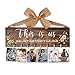 HIGH QUALITY AND 100% HANDMADE:This wooden picture frame is made of premium quallity wooden,With cute mini clothespins, vinyl lettering, and a rich deep wood stain,100% handmade pretty burlap hanging ribbon bow,that make the whole design looks more unique and cuter than other picture holder,the pre-assemble hanging twine is sturdy and not easy to fall off.
