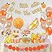 LITTLE CUTIE BABY SHOWER DECORATIONS INCLUDES – 6 x paper fans, 6 x cutouts, 2 x Honeycomb Balls, 2 x Tissue Paper Flowers Pom Poms, 1 x A Little Cutie Is on The Way banner, 1 x citrus garland, 1 x Little Cutie cake topper, 6 x cupcake toppers, 2 x citrus foil balloons, 10 x latex balloons, 5 x confetti balloons, 2 x glue dots, white ribbons.
