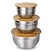 USEFUL FEATURES - Flat bases on the bottom of each metal bowl keeps it sturdy to make sure your contents are safe every time you use it, forget about any spilling. Bamboo lids that provide an airtight storage space while creating an eye-catching look to your kitchen utensils; practical and gorgeous! Each stainless steel bowl fits snugly into each other to create easy and compact storing, saving you space and saving you the headache.