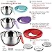 🍄 [EASY MEASURE & NON-SLIP] Quarts and liters are clearly engraved inside the bowls and fade proof, meet the demand of different measurement. A silicone non-slip bottom keeps the stainless bowls steady on counter tops when beating and whisking. Users can mix, beat, or whisk ingredients with little mess as the wide, deep bowls have high walls to prevent splatter.
