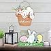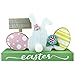 🐇MULTIPLE USES - The Easter decor measures 12 X 7.2 X 2 inches. Full of warm and romantic colors can be perfectly integrated into any decorative style and perfectly added to your home, living room, dining table, office, bedroom, fireplace, kitchen, coffee shop and tiered tray to convey love and happiness and welcome your guests and other evidences.