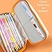 🌸 Large Capacity Pencil Case: Expanded Size 8.6 x 3.9 x 2.2 inches with five compartments large capacity storage,can hold up to 50 pens,pencils,watercolor pencils,marker pens and other small stationery,such as erasers,stickers and scissors no longer than 8 inches ( NOT included ).The separated roomy space design can organize your stationery separately,make the pencil case neat and easy to find your items.