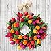 🌷Spring Tulip Wreath:This spring red tulip wreath is made of silk, rattan and artificial flowers, accented with brown durable twigs vine, that cover the base of the wreath, make for a timeless home decor wreath