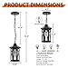 ✨【Adjustable Chain & Dimension】Dimension: 6.43" x 6.43" x 11.3"(L x W x H). Adjustable Chain: Max to 61.6"(H). Customize the length of the chain to perfectly fit your desired hanging height, making it perfect for any outdoor area. This outside hanging lighting fixture can be installed on a flat or sloped ceiling. Includes all mounting hardware for quick and easy installation.