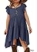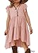 Girls Ruffle Dress adds fun to your girl's summer daily wearing! Casual Loose Style, Round Neck, Pullover, Front Button Down design, Ruffle Sleeve, Waist Pleated Details, Knee Length, Solid Color, Tiered, Unique High-low Hemline Design, Flowy Swing Dress with two side pockets, Very flattering and cute.