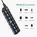 Individual On/Off Switches: USB hub powered is designed with individual on/off switches, you can turn the power on and off whenever you choose without unplugging the equipment. Besides, Each port includes an LED light so you can check the power status.