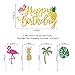 Hawaii Decorations For Birthday Party Package Include - The Happy Birthday Decorations Cake Toppers set includes 1pcs big Hawaii HappyBirthday cake Toppers, with size of 6.5*3.7inches;48 pcs pineapple flamingo palm leaves cupcake toppers,with 4 kinds( pineapple,flamingo,palm leaves,tree). This happy birthday cake topper fits in cakes of most sizes,put them on cakes, cupcakes, ice cream, fruits, pie, dessert, cheese or any dish and food appetizer that has a great impact on your party.
