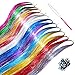 Hair Tinsel Strands Kit Package: 12 Pieces of Hair Tinsel Strands , one Piece Hair Extensions Loop Needle Threader Wire Pulling Hook Tool, and Several Micro Silicone Link Rings Beads