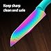 Premium Quality Sharp Kitchen Knife- Made of quality stainless steel and coated with titanium, this boxed knife set is rust proof. This premium quality stainless-steel knife set gives you superior blades. Sharp, sturdy & practical.Stainless Steel material adds quality and Rainbow Color coating provides a very beautiful look and decor as if they are art pieces.